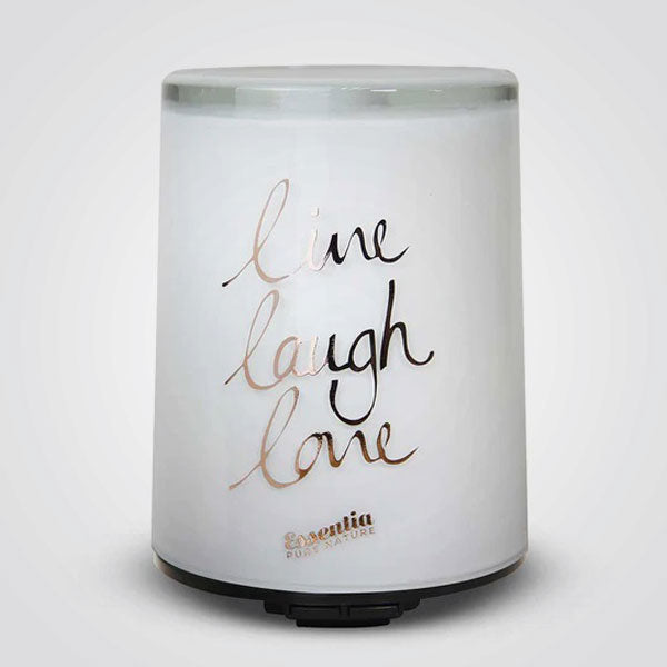 Ultraschalldiffusor aus Perlglas – Weiß „Live Laugh Love“