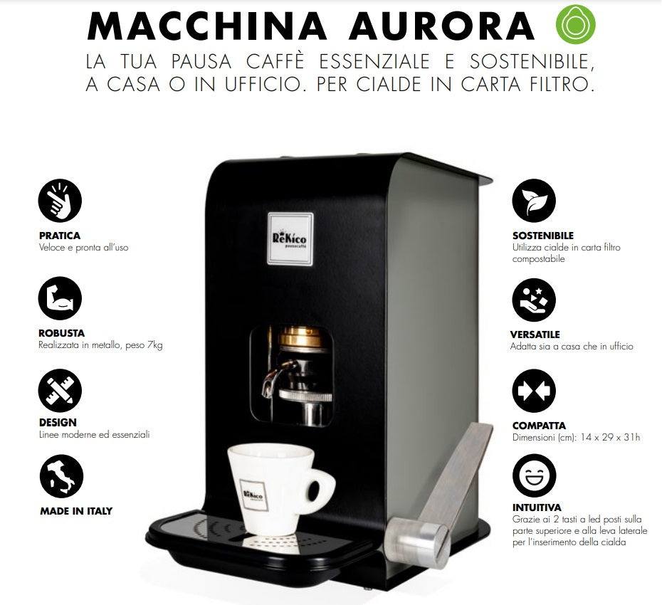Machen Sie tagsüber eine kurze Pause mit dieser umweltbewussten Lösung, um einen hochwertigen Kaffee zu genießen, ohne Plastikmaterial zu verwenden. Akzeptieren Sie Filterpapierschoten für ein reichhaltiges und authentisches Kaffeeerlebnis. Dank der 2 LED -Schlüssel, die im oberen Teil und dem seitlichen Hebel für den Einfügen der Waffel aufgenommen wurden. Robusta aus Metall.