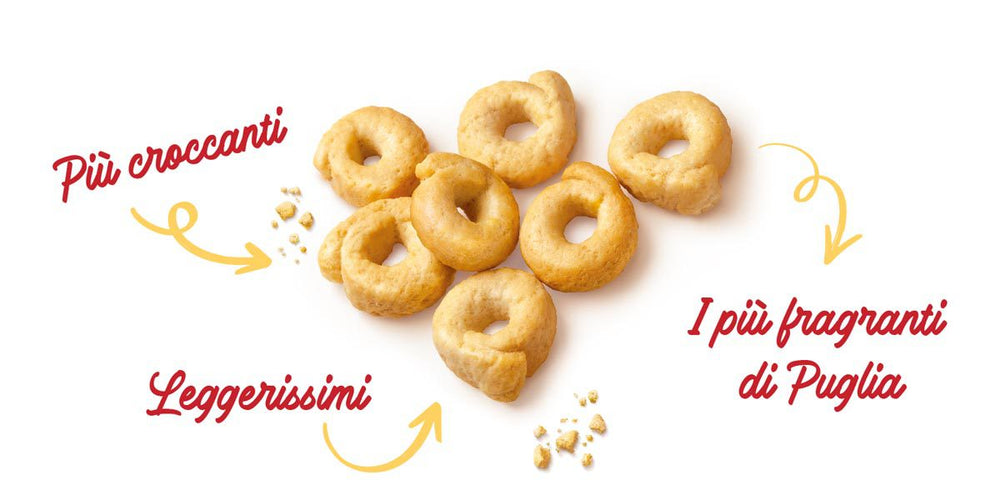 Les Taralli traditionnels sont le fruit d'une tradition transmise de génération en génération. Une recette qui préserve toute la saveur de la transformation artisanale.