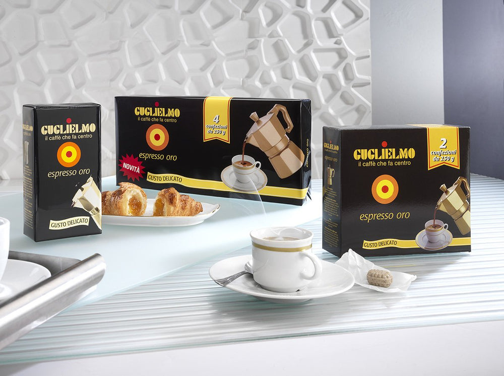 Espresso Oro è una miscela di pregiati caffè selezionati nei paesi d'origine, dal gusto più delicato e leggero, macinato appositamente per moka. Adatto a chi cerca il massimo del piacere, per un caffè leggero dopo pranzo o per una pausa piena di gusto.